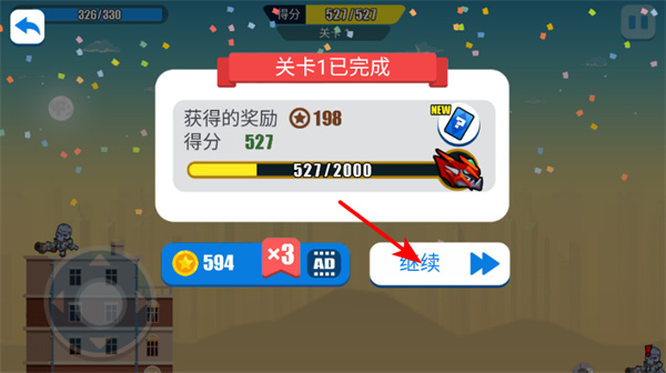 4、點(diǎn)擊繼續(xù)按鈕,這是開啟新關(guān)卡的基礎(chǔ)操作,點(diǎn)擊后可進(jìn)入下一關(guān),挑戰(zhàn)更復(fù)雜的場(chǎng)景。