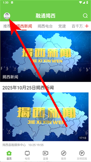 1、打開融通揭西新聞,點(diǎn)擊左上角個(gè)人頭像,進(jìn)入個(gè)人中心頁(yè)面。