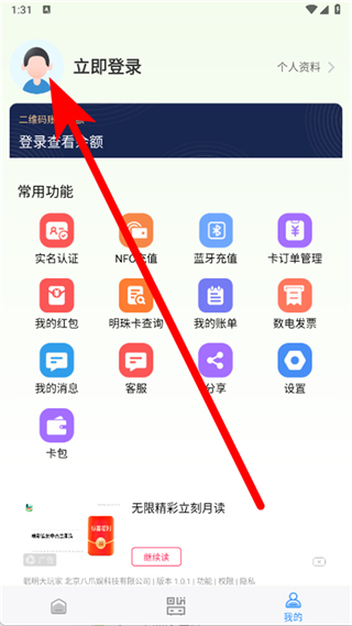 2、在個人中心頁面,點擊立即登錄區(qū)域,進入登錄界面。