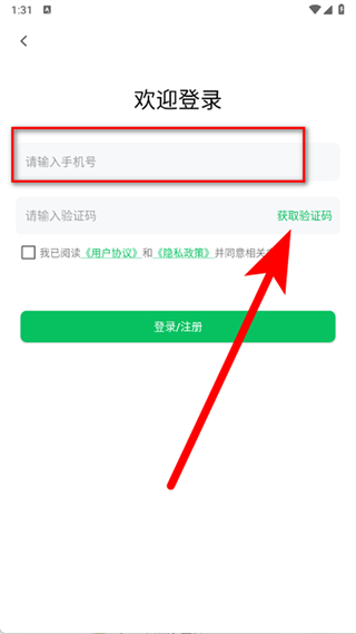 3、在登錄界面,輸入手機號,勾選后,點擊獲取驗證碼。