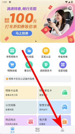 1、打開大連明珠卡充值,點擊底部導(dǎo)航欄的我的,進入個人中心頁面。