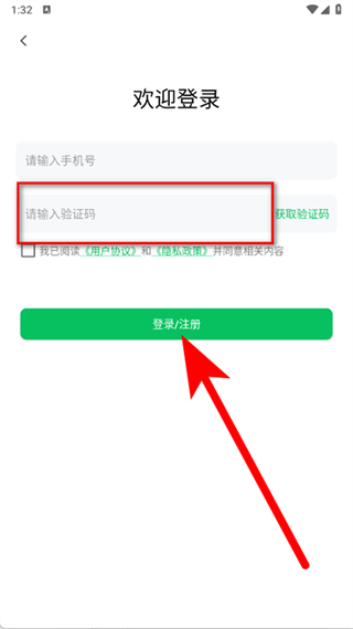 4、輸入收到的短信驗證碼,點擊登錄注冊按鈕,完成賬號登錄。