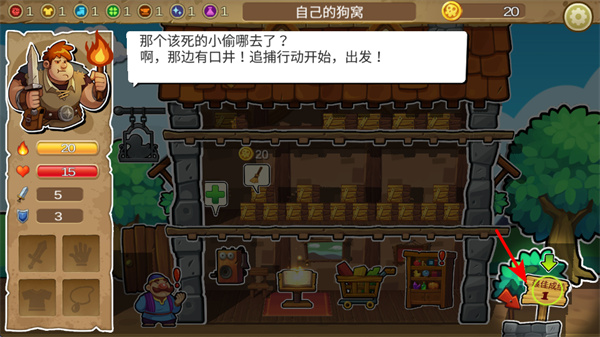 2、點擊任務(wù)標識,這是推進主線的核心操作,點擊后可接取追捕小偷的任務(wù),開啟地牢探索進程。