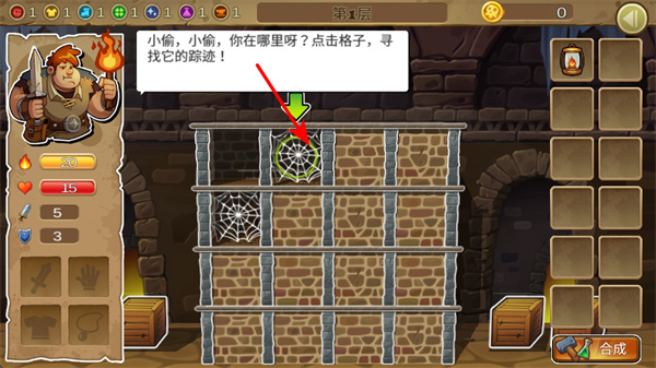 3、點擊格子探索小偷蹤跡,這是解鎖地牢區(qū)域的關(guān)鍵步驟,點擊后可清除蛛網(wǎng)發(fā)現(xiàn)道具,揭開地牢秘密。