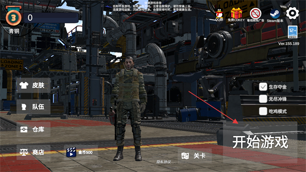 1、選好皮膚在倉庫換上裝備后,點擊開始游戲即可進入地圖。