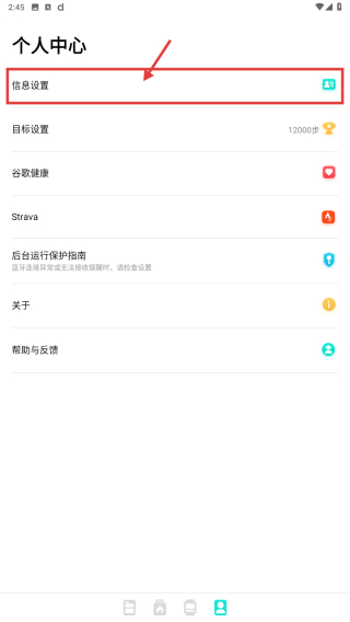 2、在個人中心頁面,點(diǎn)擊信息設(shè)置選項(xiàng),進(jìn)入信息設(shè)置頁面。