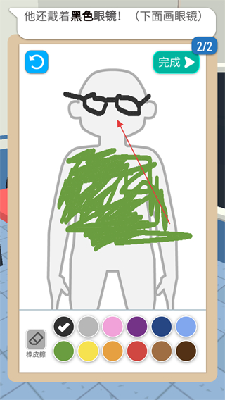 3、根據提示選擇黑色,繪制黑色眼鏡,完成所有繪制任務后點擊完成。
