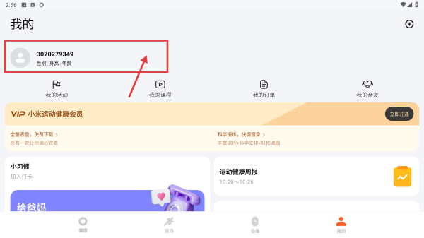 2、在個(gè)人中心頁面,點(diǎn)擊賬號(hào)區(qū)域,進(jìn)入小米賬號(hào)頁面。