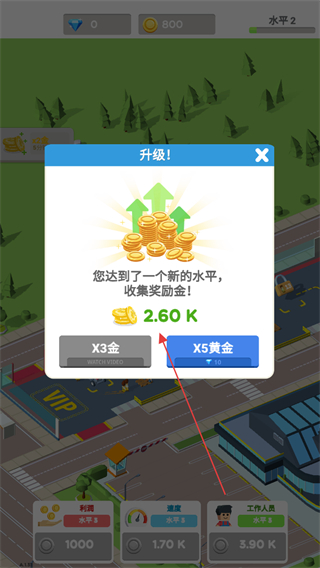 4、升級到水平2后,收集獎勵金幣,繼續(xù)拓展造車業(yè)務(wù),持續(xù)通關(guān)。
