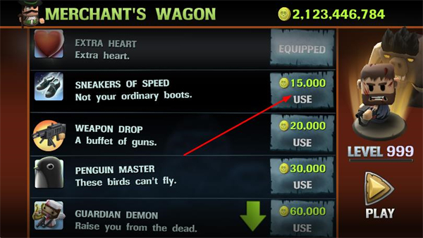 4、進入商店界面,消耗金幣購買道具,提升角色的移動速度、武器獲取概率等屬性。