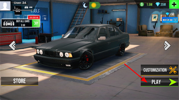 1、進(jìn)入游戲后,點(diǎn)擊PLAY按鈕,這是開啟賽車挑戰(zhàn)的關(guān)鍵操作,點(diǎn)擊后可進(jìn)入游戲模式選擇界面,開始賽車冒險(xiǎn)。