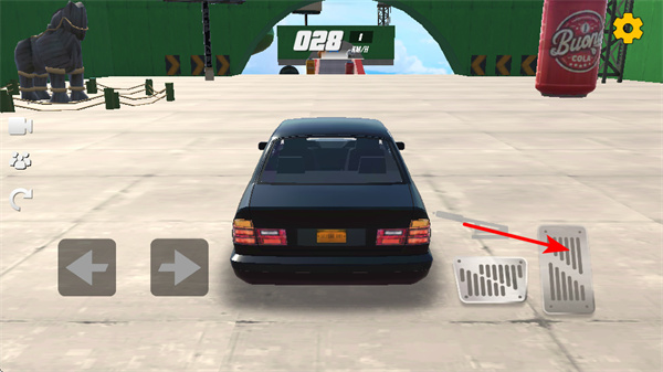 3、使用油門踏板控制車速,這是操控賽車的關(guān)鍵步驟,控制后可調(diào)整賽車速度,完成特技動(dòng)作與關(guān)卡挑戰(zhàn)。