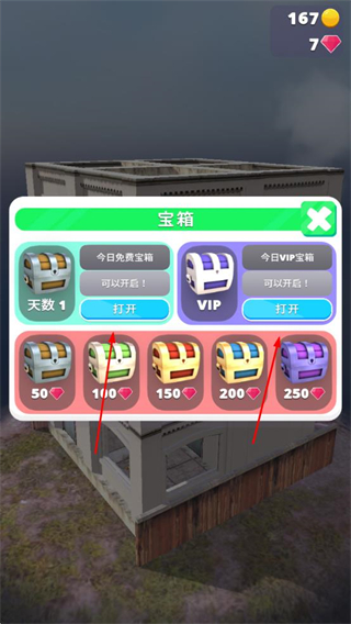 1、可開啟今日免費寶箱、今日VIP寶箱,也可消耗鉆石開啟不同等級的寶箱。