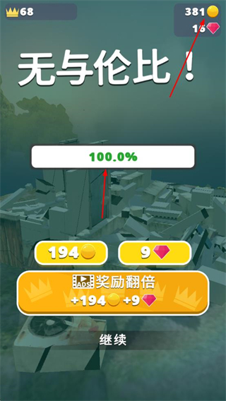 4、通過持續(xù)拆除建筑,積累皇冠數(shù)值等成就標識,提升游戲等級,解鎖更多游戲內(nèi)容。