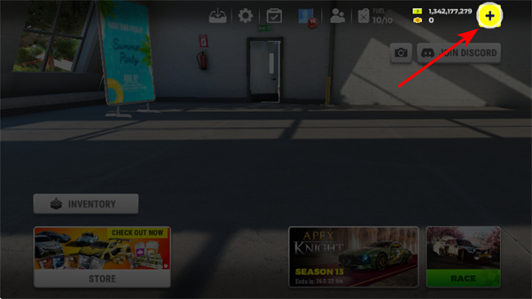 3、點擊加號按鈕獲取資源,這是積累發(fā)展素材的關(guān)鍵步驟,點擊后可獲得金幣、鉆石等資源,用于賽車升級。