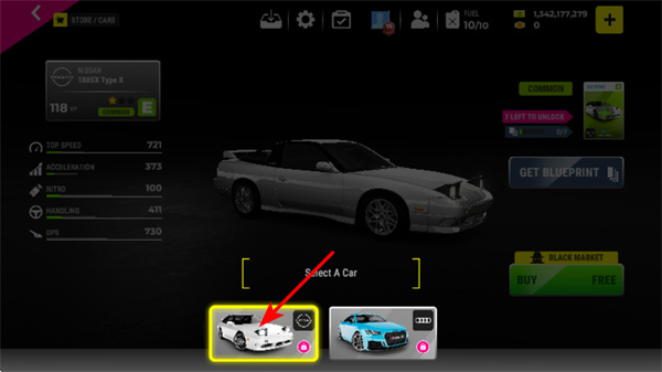 2、選擇第一輛賽車,這是開啟競速之旅的核心操作,選擇后可獲得初始賽車,開始參與各類賽車比賽。
