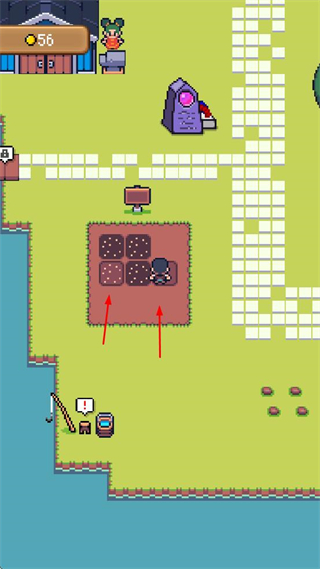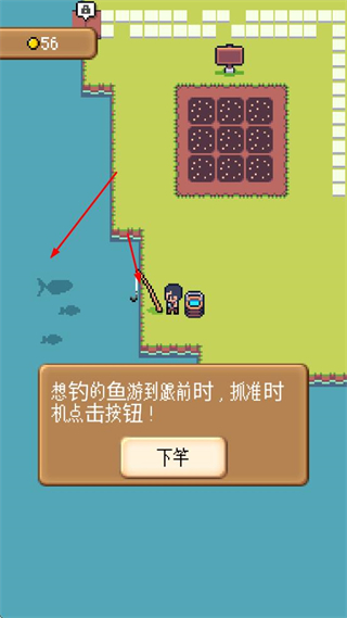 3、在水域旁進行釣魚,抓準時機點擊按鈕,獲取魚類資源。
