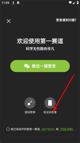 3、在登錄選擇頁(yè)面,點(diǎn)擊驗(yàn)證碼登錄,進(jìn)入驗(yàn)證碼登錄/注冊(cè)頁(yè)面。