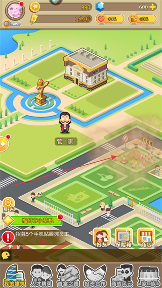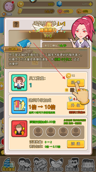4、招募員工并升級,提升建筑賺錢效率,積累大量金幣,不斷壯大財富帝國。