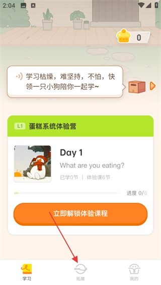 1、打開蛋糕英語,點擊拓展選項,可進入拓展功能頁面。