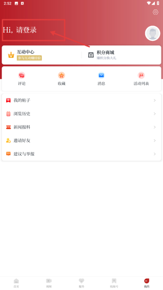 1、打開新聞類應用,點擊底部我的選項,進入個人中心頁面。