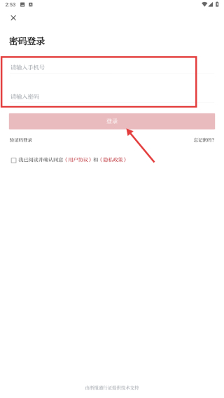 4、在密碼登錄頁面,輸入手機號和密碼后點擊登錄,完成密碼登錄操作。