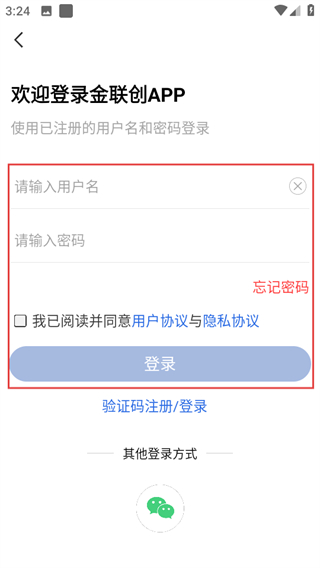 3、在登錄選擇頁面,輸入信息,同意協(xié)議后點擊登錄可完成登錄。