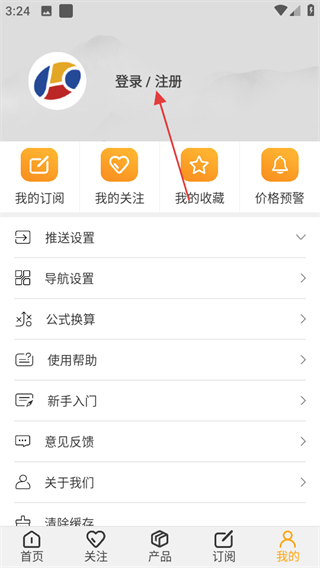 2、在個人中心頁面,點擊登錄注冊可進入登錄選擇頁面。