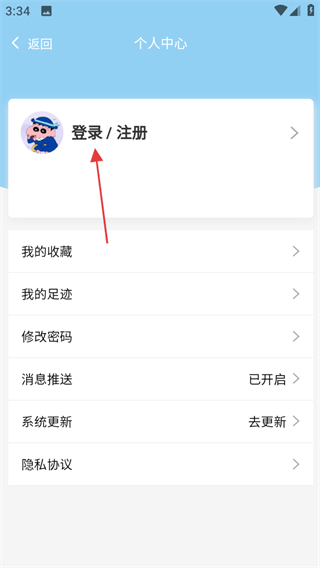 2、在個人中心頁面,點擊登錄注冊可進入登錄選擇頁面。