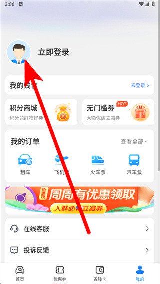 2、在個人中心頁面,點擊立即登錄區(qū)域,進入登錄界面。