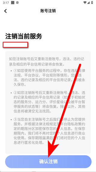 5、在賬號注銷頁面,點擊確認注銷,完成賬號注銷。