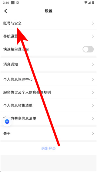 3、在設置頁面,點擊賬號與安全,進入賬號安全管理頁面。