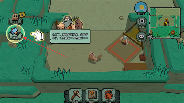 1、點(diǎn)擊建造按鈕,開啟建筑建造流程,如建造收容所。