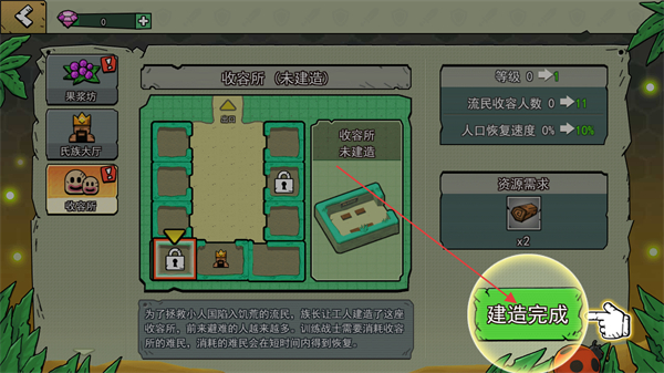 3、點(diǎn)擊建造按鈕,消耗資源開始建造收容所。