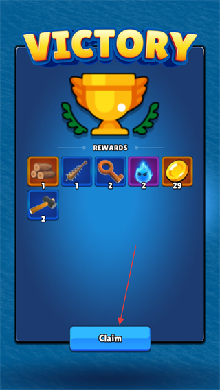 4、通關(guān)后點擊Claim領取獎勵,獲取木材、金幣等資源,繼續(xù)島嶼探索。