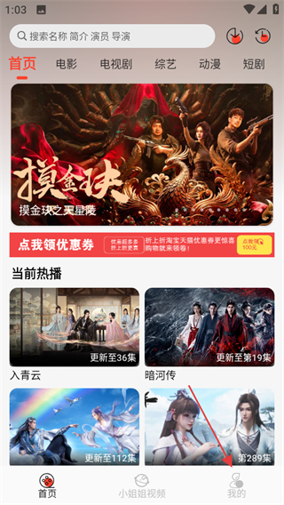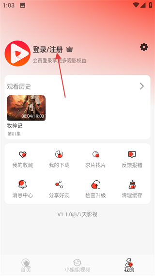 1、打開八天影視,點(diǎn)擊頁面右下角我的,可進(jìn)入個(gè)人中心頁面。