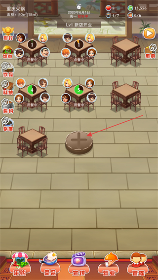 卡通風(fēng)格的視覺呈現(xiàn)、舒適的背景音樂與豐富的經(jīng)營環(huán)節(jié)相結(jié)合,讓使用者真正置身于火鍋店中,從食材采購到顧客滿意離店,代入感極強(qiáng)。