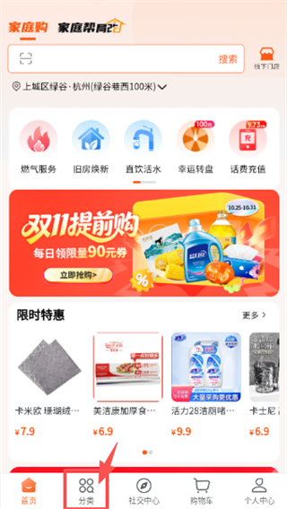 1、打開生活服務(wù)類應(yīng)用,點(diǎn)擊底部分類選項(xiàng),進(jìn)入分類頁(yè)面。