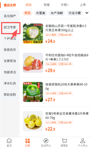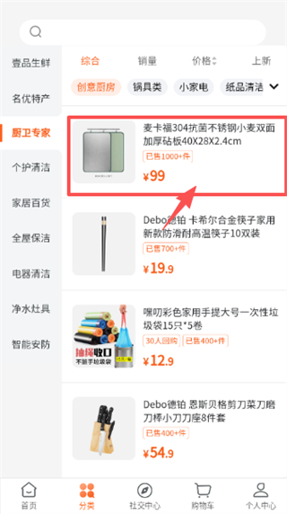 2、在分類頁(yè)面,點(diǎn)“廚衛(wèi)專家分類選項(xiàng),進(jìn)入廚衛(wèi)商品列表頁(yè)面。