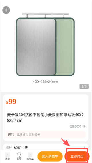 3、在廚衛(wèi)商品列表頁(yè)面,找到麥卡福304抗菌不銹鋼小麥雙面加厚砧板商品條目,點(diǎn)擊進(jìn)入商品詳情頁(yè)。