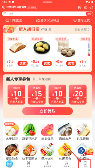 1、打開生鮮電商類應(yīng)用,點(diǎn)擊底部我的選項(xiàng),進(jìn)入個(gè)人中心頁面。