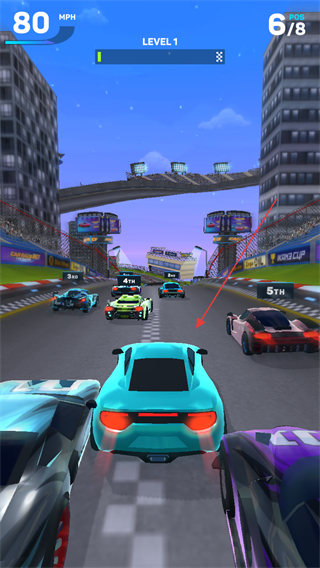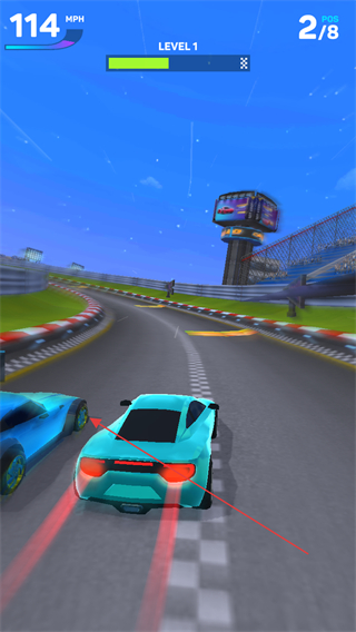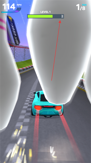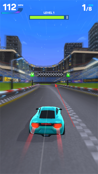4、駕駛賽車沖向終點(diǎn),完成Level1比賽,解鎖后續(xù)關(guān)卡。