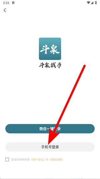 2、在登錄選擇頁面,點擊手機號登錄,進入手機號登錄頁面。