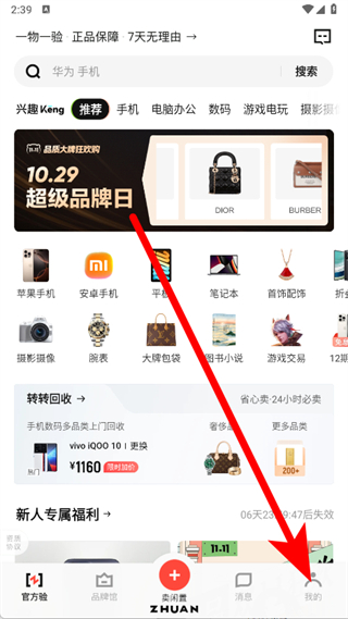 1、打開(kāi)轉(zhuǎn)轉(zhuǎn),點(diǎn)擊底部導(dǎo)航欄我的,進(jìn)入個(gè)人中心頁(yè)面。