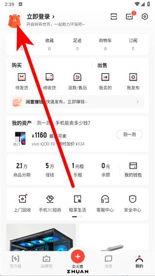 2、在個(gè)人中心頁(yè)面,點(diǎn)擊立即登錄,進(jìn)入登錄界面。