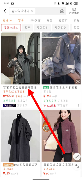 2、在搜索建議,選擇相關(guān)商品選項(xiàng),進(jìn)入商品列表頁(yè)。