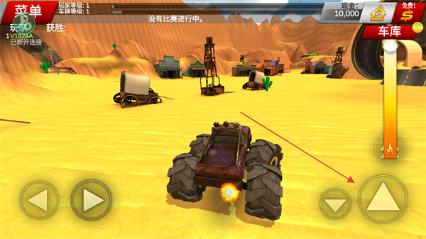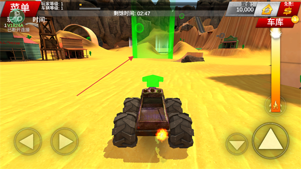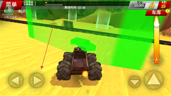 2、點(diǎn)擊向上按鍵加速,駕駛越野車在沙漠中行駛,熟悉操作。