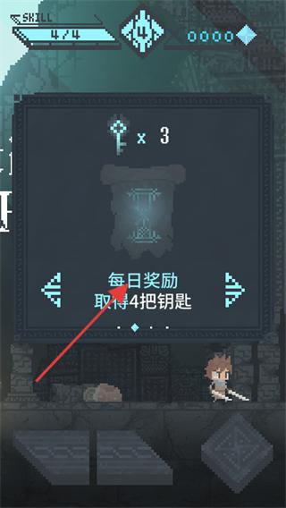 1、在游戲界面最右側(cè)石門處可以查看每日獎勵,每天可以領(lǐng)取4把鑰匙。