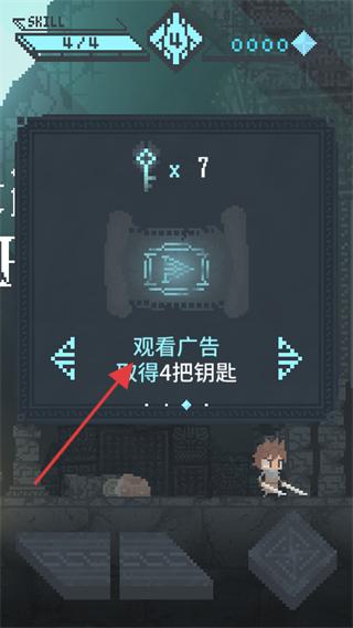 2、在石門處查看公告,通過觀看廣告可以獲得4把鑰匙。