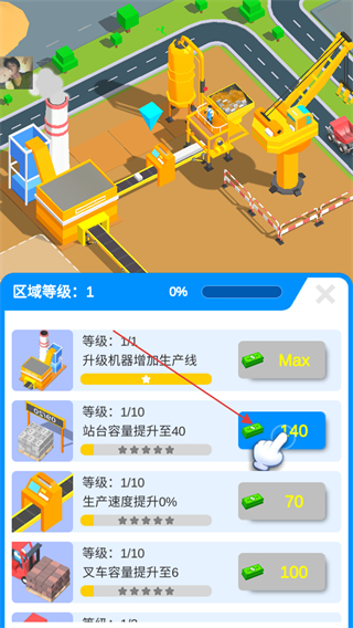 4、花費(fèi)金幣升級工廠設(shè)施,如提升站臺容量,增加生產(chǎn)效率,發(fā)展沙地產(chǎn)業(yè)。